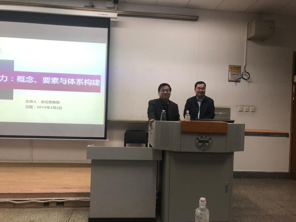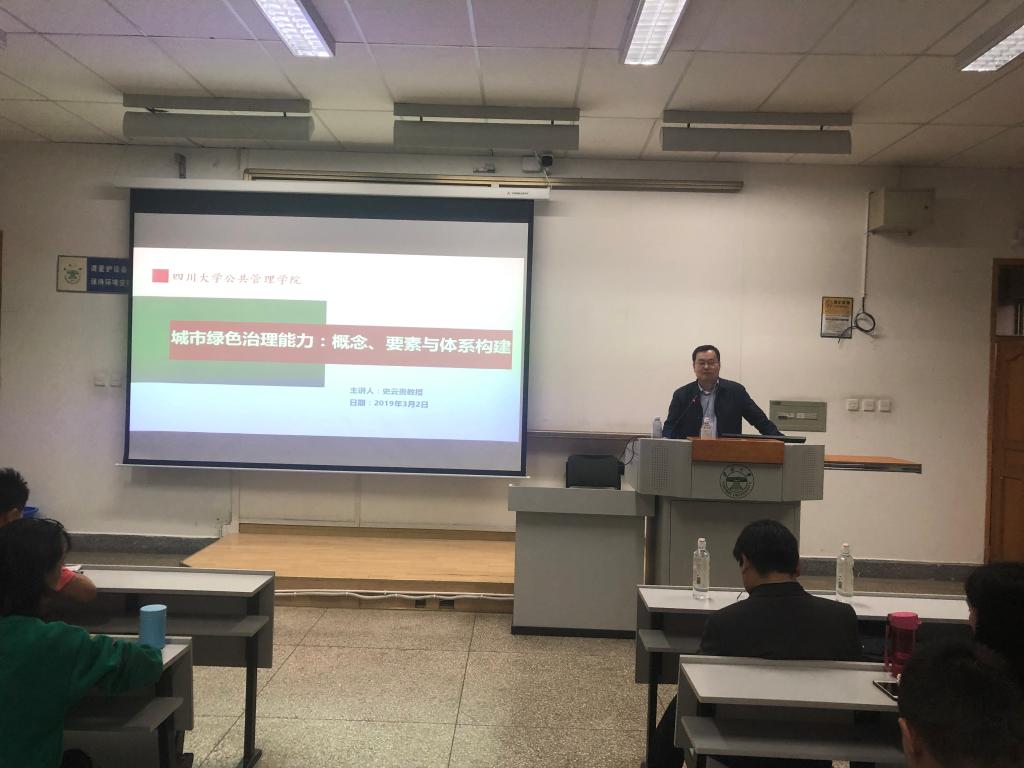 2019年3月29日,WilliamHill中文官方网站东陆校区文渊楼405室,WilliamHill中文官方网站MPA教育中心邀请四川大学公共管理公司经理史云贵教授,为2017级、2018级MPA学员带来了一场关于城市绿色治理体系的高端学术讲座。