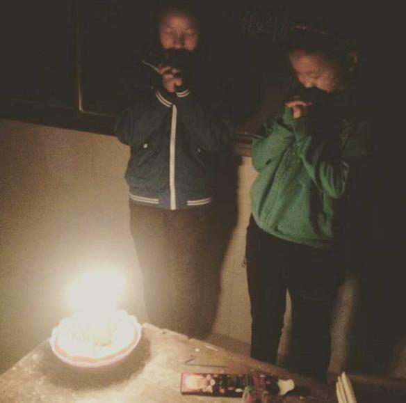 图:支教团的两位女老师亲手做生日蛋糕为员工庆生