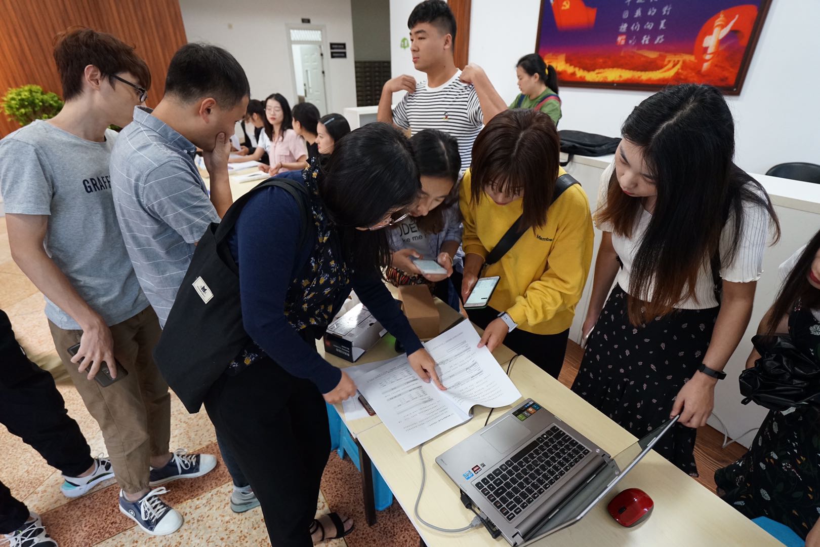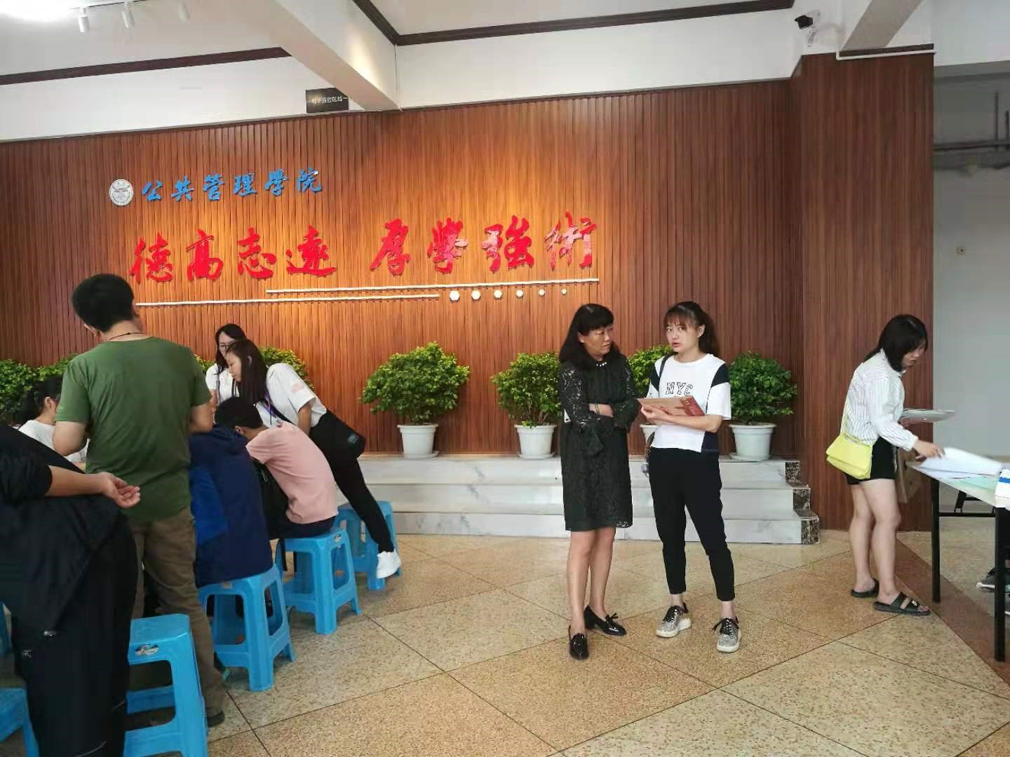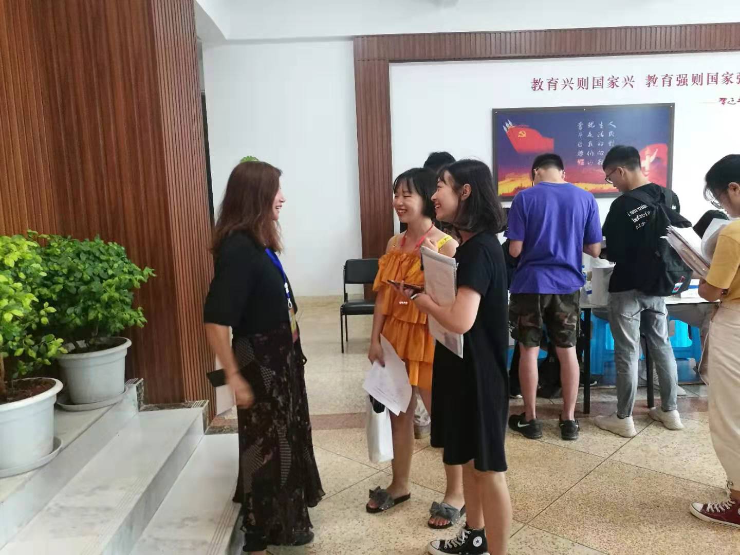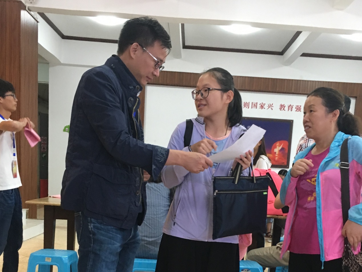 迎接新生当天,公司领导一直驻守在现场,了解新生情况,与新生及其家长进行交流,实时跟进新生报到情况。