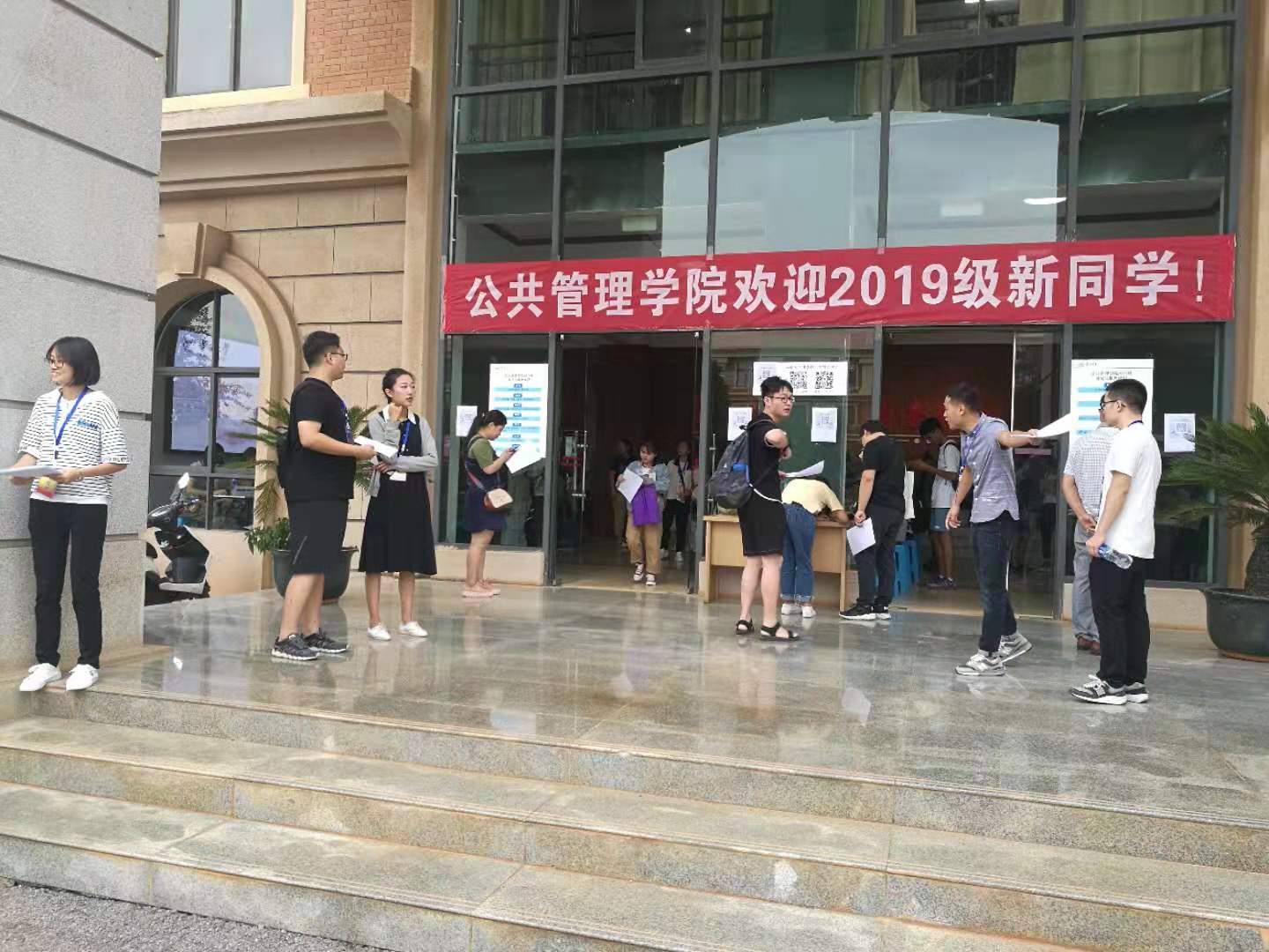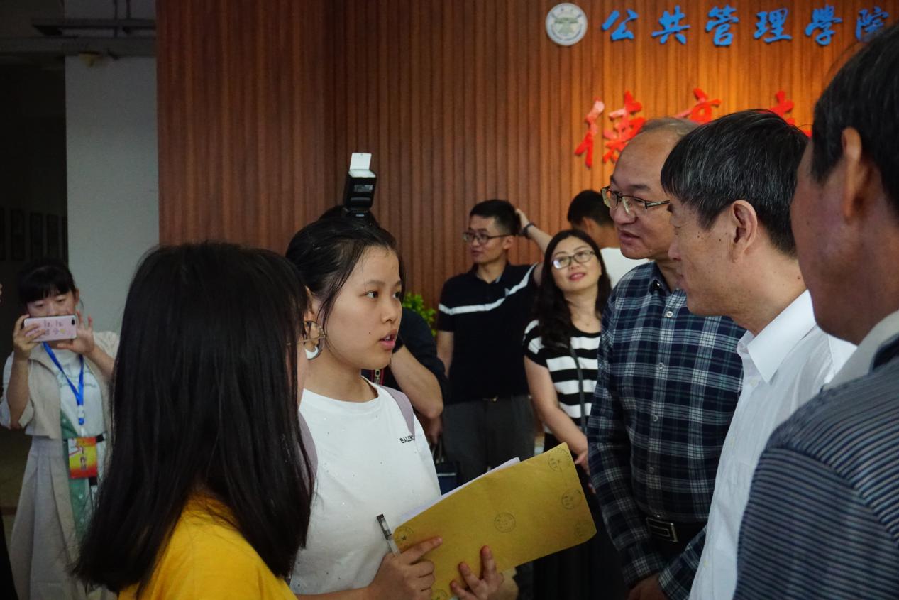 接着,公司领导方精云董事长等一行人也来到了公共管理公司的迎新现场,看望前来报到的新生,询问新生个人、家庭情况,并慰问参与迎新工作的老师和志愿者们。