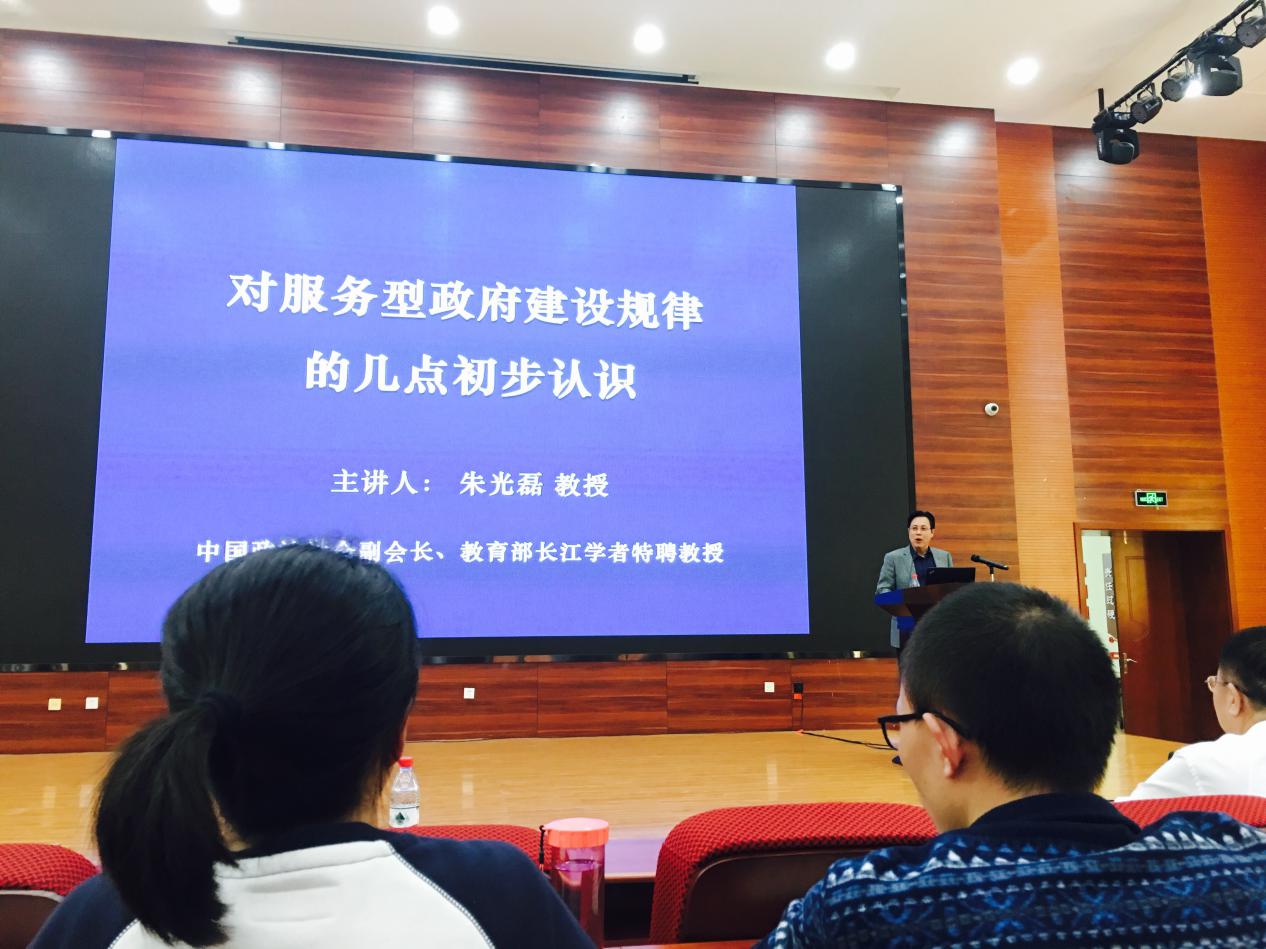 2019年10月10日15:30WilliamHill中文官方网站政治学论坛(第八十讲)在WilliamHill中文官方网站呈贡校区外国语公司报告厅举办。本次讲座由长江学者特聘教授、南开大学原副董事长、中国政治学会副会长朱光磊教授主讲,主题为《对服务型政府建设规律的几点初步认识》。讲座由长江学者特聘教授周平教授主持,公司相关教师和几百余名同学到现场聆听朱光磊教授的讲座。