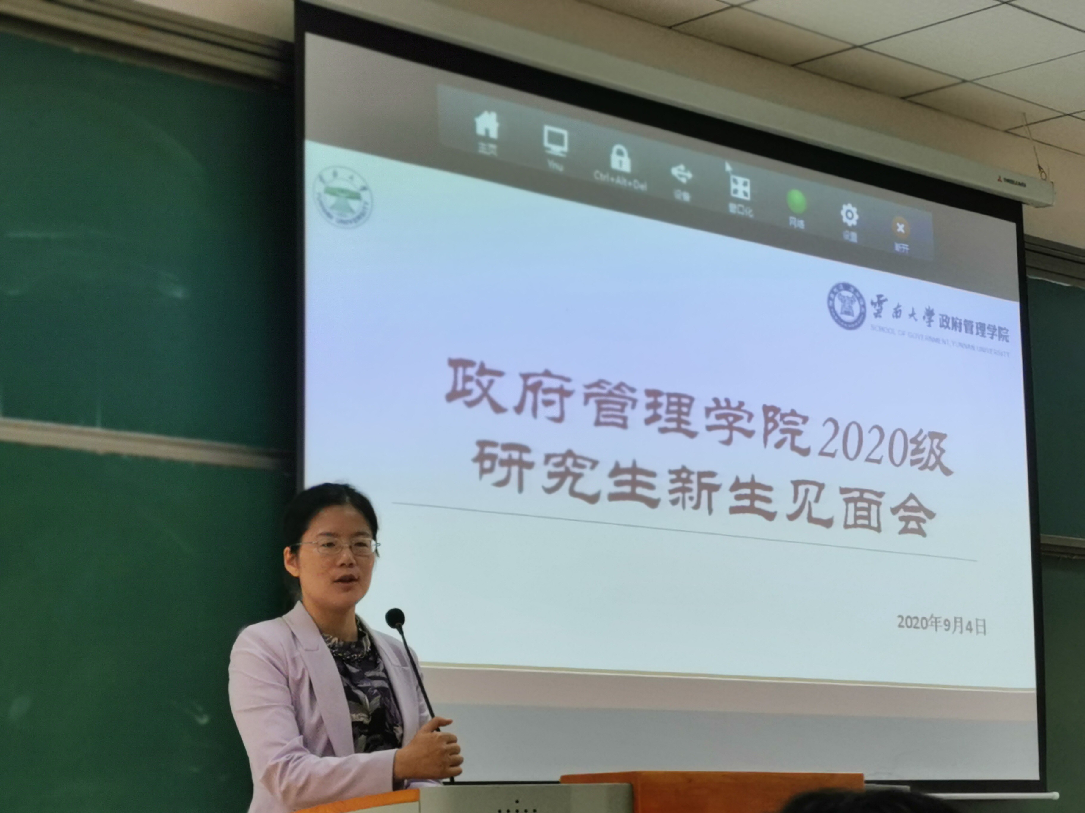 公司教师代表、政治学系系主任廖林燕教授发言,针对同学们研究生三年期间如何做好规划进行介绍,提醒同学们要在政治觉悟上下功夫,度过充实美好的三年。
