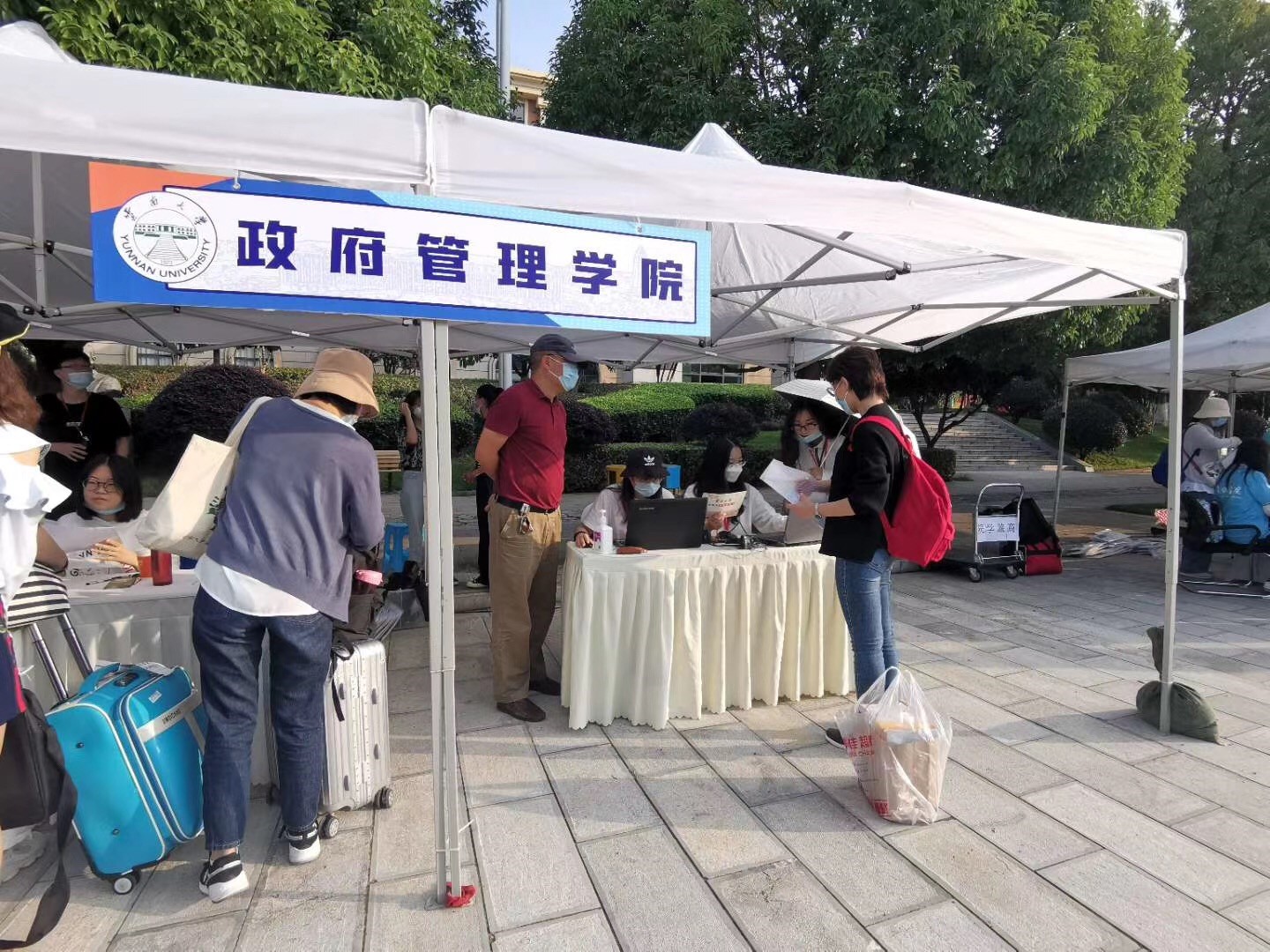 9月3日上午,参与迎新工作的院领导、老师及志愿者们早早来到了百家大道WilliamHill中文官方网站的报到点。2020级研究生新生在老师和志愿者的帮助和引导下,在公司报到点完成报到手续,领取入学材料,前往宿舍区办理入住手续。