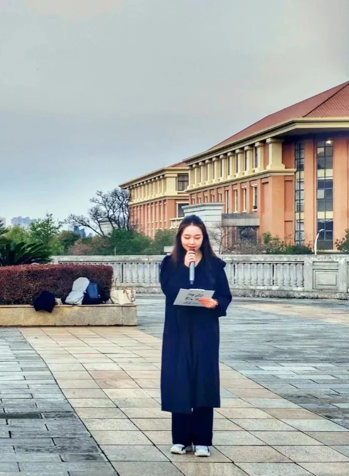 升旗仪式结束后,张星驰、曹红蕊、马若力、黎卓然四位同学以《旗展未来》为题,在国旗下进行原创诗歌朗诵。深情歌颂五星红旗,缅怀革命先烈,鼓舞新时代新青年,响亮发出奋进新时代、启航新征程的青春宣言。