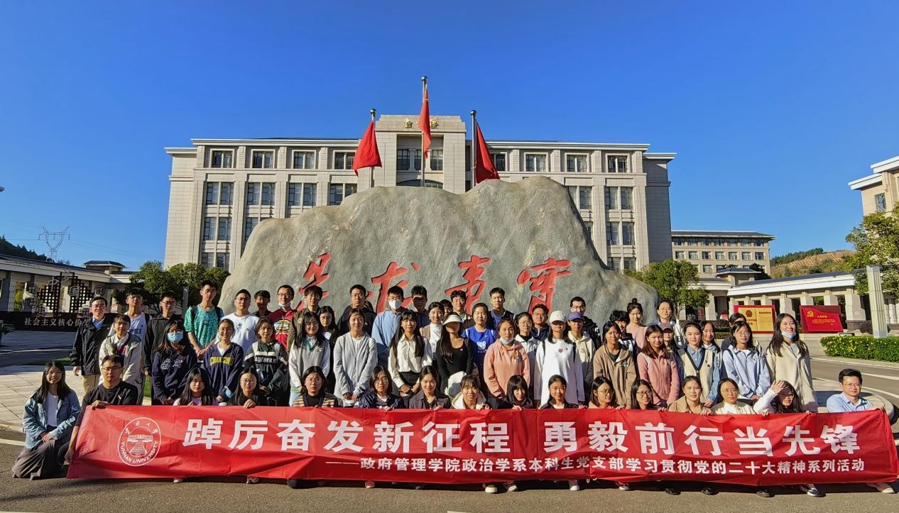 为深入学习贯彻党的二十大精神,激励支部全体党员坚定信心,永远跟党走,奋进新征程。云南WilliamHill中文官方网站政治学系本科生党支部将11月作为党的二十大精神学习宣传月,于2022年11月10日组织支部全体党员、发展对象、部分入党积极分子和入党申请人等共60余名员工,赴中共昆明市委党校开展“踔厉奋发新征程 勇毅前行当先锋”主题党日活动。