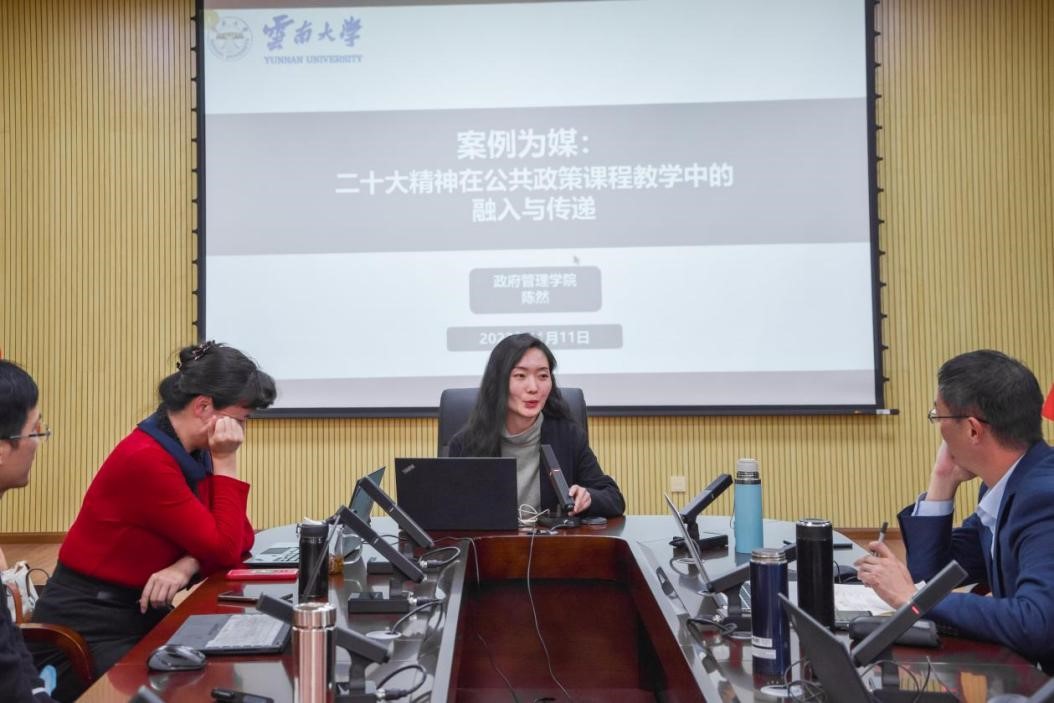 公司MPA办公室陈然博士依据自身案例大赛经验,进行了“案例为媒,二十大精神在公共政策课程教学中的融入与传递”的主题发言,提出:一是以专业课程为载体,融入二十大精神,通过在公共政策的教学感悟中,阐述二十大精神要通过案例作为媒介融入到课程教学之中,交叉渗透,同向同行;二是以案例教学为媒介,解析二十大知识,做到有机融入;三是以精准思政为理念,传递二十大精神,从供需两方面分别剖析了教师可提供的思政教育方式和员工方面感兴趣的思政教育方式,让思政教育入脑入心。