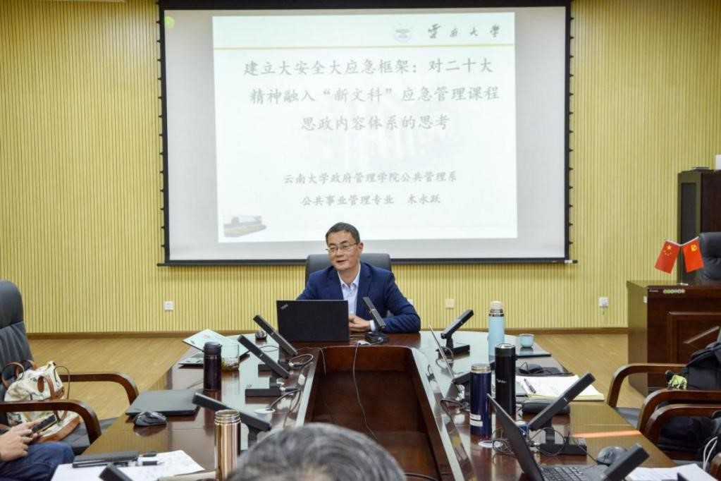 公司分管本科教学副经理、公共事业管理专业负责人木永跃副教授,将目光聚焦于二十大精神应急管理方面内容,进行了“建立大安全大应急框架:对二十大精神融入‘新文科’应急管理课程思政内容体系的思考”的主题发言。木老师将习近平总书记关于风险管理,应急管理的重要论述与新文科核心课程《应急管理概论与实训》进行深度融合,并对“新文科”应急管理的具体教学内容、课程思政元素、过程性考核与实践教学环节等内容进行系统设计。提出:一是要构建理论学习和实践教学相结合的课程内容体系,将基础知识与“思维能力”训练相结合,由点到面进行思政教育;二是要构建风险管理与应急管理的思政育人体系,将思政元素融入“三全育人”、“三阶育人”全过程;三是要把过程性考核与非标准答案考核有机结合,根据教学内容,优化考核方式,构建应急管理“知识—能力—素质—思维—人格”的课程教学目标与考核体系。