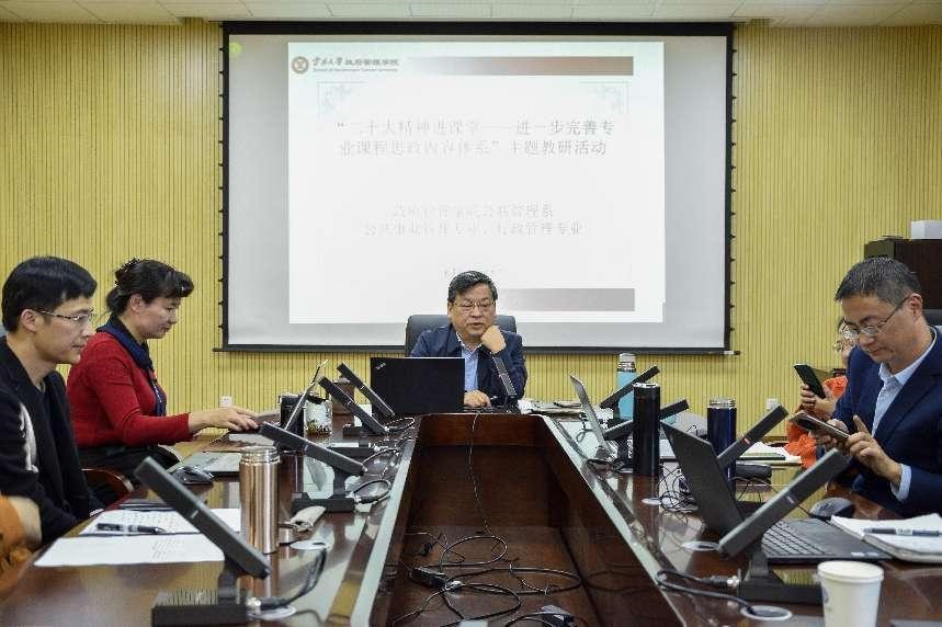 会议由公管理系主任,公共管理学科带头人邓崧教授主持。邓老师从公共管理系的发展历程出发,向全体与会师生介绍了公共管理团队建设现状、学科前沿以及新发展要求,倡导全系教师要深入研究探讨教学经验和方法,深度挖掘课程内容中的思政元素,将二十大精神真正深入到教学活动当中。