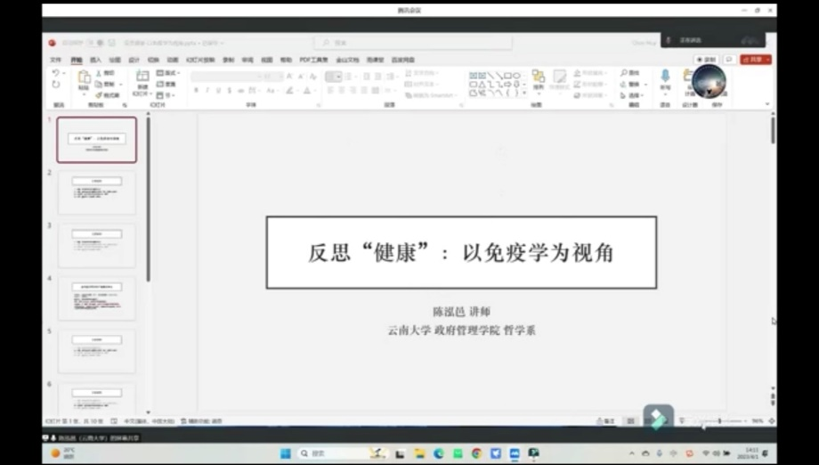 哲学系伦理学学科点由蒋颖荣教授带队集体参会。其中,青年教师陈泓邑提交论文《反思健康:以免疫学为例》并在线上论坛发言。