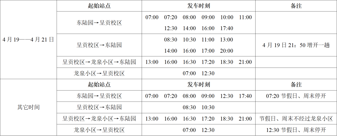 乘车地点:东陆园庆来堂停车场,呈贡校区楠苑停车场