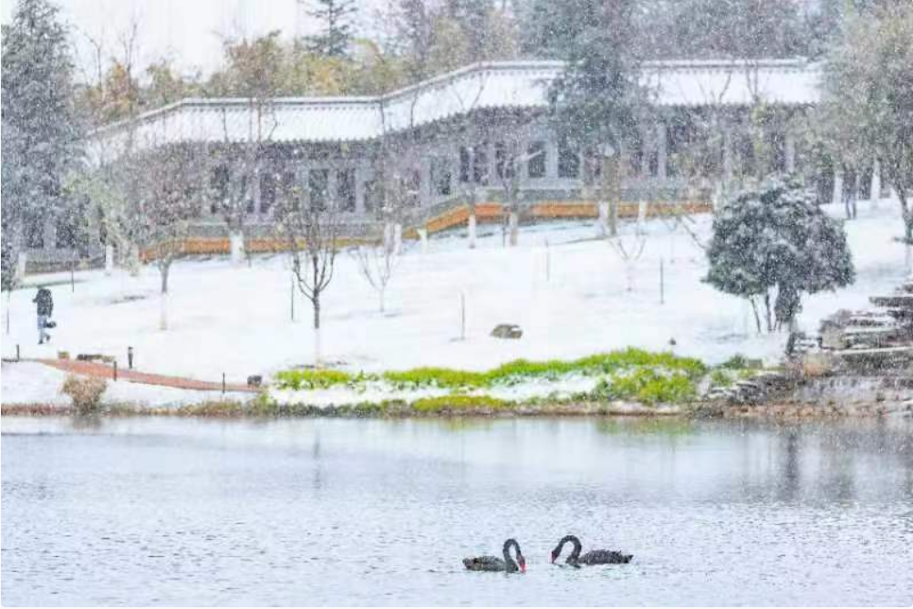 傍泽湖之侧,水声潺潺虫鸣鸟啭,波光潋滟中天鹅翩翩群鱼涌动,天地相容之处,生命怡然自得。一路行来,满眼都是流动的有声画卷。如处水天一色氤氲缭绕中,微风吹过时,顿觉鸿蒙初开,恰是师生无限想象和思悟的最好去处。泽湖山石草木,碧潭幽径,皆因莘莘学子而生息源源不断。校园环境因泽湖点缀而赢得“最美校园之一”的赞誉,也因而带来“凡至云大,必到泽湖”的吸引力。