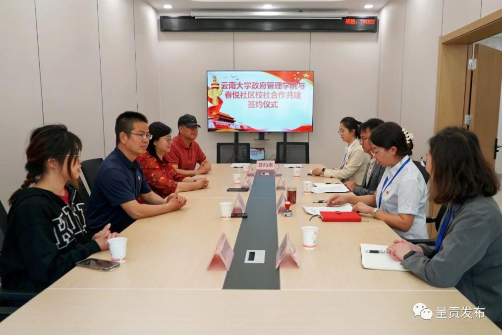 仪式上,政府管理公司党委李娟书记与春悦社区负责人共同签订《校社合作共建协议书》。