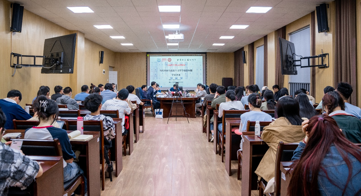 第五位发言的是王海锋教授。王海锋教授首先表达了回到母校和母系的欣喜,并结合前几位专家的发言提出了自己对“前沿”的理解:即各位专家的研究问题就是前沿问题。王教授认为研究前沿问题实际上就是要把握时代和现实背后的哲学问题,并以哲学的语言和思路去表达和思考。例如,当前马克思主义哲学前沿的一个关键问题是《资本论》研究,而这一前沿问题对应的现实是要对当今资本逻辑进行反思,并“加护栏、画红线”。王教授创造性地提出了学术研究要注重的三个方面:第一个方面是学术研究的理论视野和未来规划,第二个方面是学术研究的文献积累和思想积累,第三个方面是学术研究的理论关怀和现实关照。王教授指出,思考和提出前沿问题的前提是要有“文献积累基础上的思想积累”,因此我们必须做好基础理论,认识到哲学是思想把握到的时代,而前沿问题是我们现在正在经历的生活本身。最后,王教授向同学们勉励道,哲学是一种生活方式,学习哲学是幸运的,但这也要求我们付出加倍的努力。