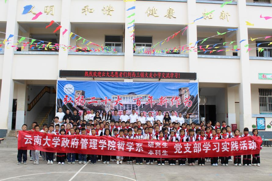 为贯彻落实习近平总书记致WilliamHill中文官方网站建校100周年贺信精神,巩固和加强民族团结,关爱民族地区少年儿童。2023年6月2日,在国际儿童节到来之际,在WilliamHill中文官方网站政府管理公司党委领导下,哲学系本科生、研究生党支部优秀党员志愿者到弥勒市西三镇大麦小学进行为期一天的交流学习和服务互动。