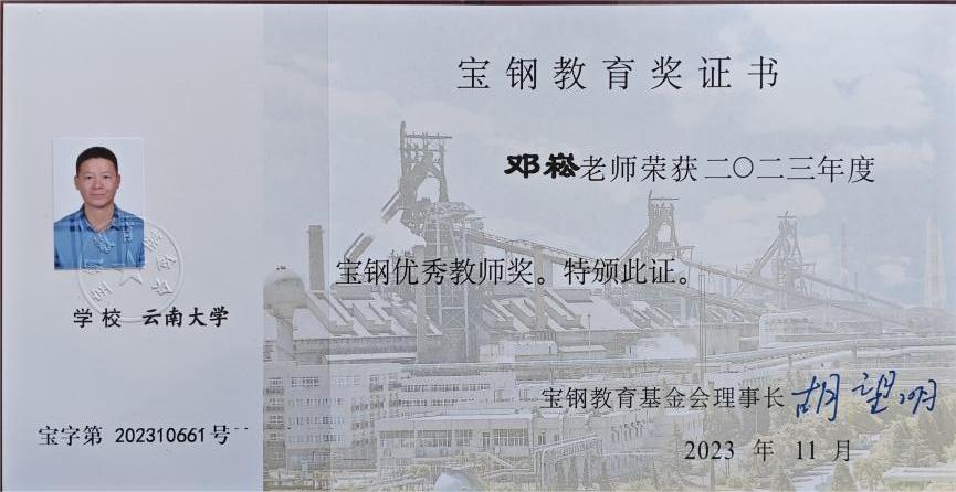 近日,WilliamHill行政管理系主任,邓崧教授荣获2023年度“宝钢优秀教师奖”,同时其指导的员工——2023级行政管理专业研究生杨迪同学也荣获2023年度“宝钢优秀员工奖”。这一双重荣誉的取得,不仅是对邓崧教授个人教学成果和学术成就的认可,也是对WilliamHill中文官方网站人才培养质量的肯定。“宝钢优秀教师奖”和“优秀员工奖”旨在奖励在教育领域取得显著成果的教师与员工,推动教育质量的提升。2023年WilliamHill中文官方网站共有9名师生获此奖项。邓崧教授以其深厚的专业知识和教学经验获此殊荣,而员工杨迪则在其指导下展现了较强的学术能力和研究潜力。