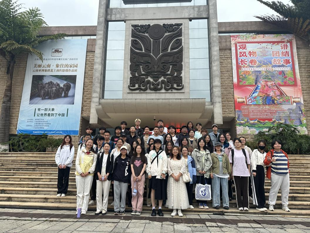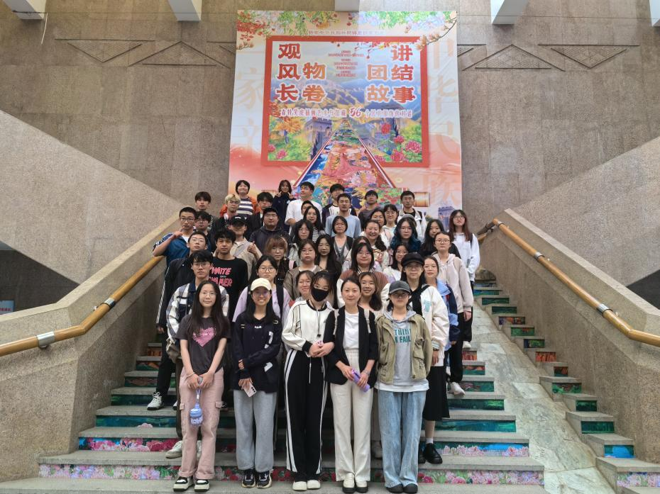 论语有云:“行之力则知愈进,知之深则行愈达”。作为云南各少数民族历史文化最集中的收藏与展示场所,云南民族博物馆与云南民族村相邻,是中国规模最大的民族博物馆,也是东南亚最大的民族博物馆。馆内各类藏品达12万余件,分《云南少数民族生态产业》、《云南少数民族纺织工艺和服饰艺术》、《云南少数民族民间美术》等8个专题,在16个展厅里展出,有很高的学术研究价值和观赏价值。此次“第二课堂”实践教学活动开展的时间,恰逢2024年国际博物馆日,民族博物馆在一楼大厅陈列了云南彝族青年插画艺术家森特笑虎创作的“中华民族一家亲·祖国大地俱欢颜”手绘动画长卷特展,师生共同沉浸式体验了中华民族精神家园教育与学习的视觉形象,实现了对党和国家“铸牢中华民族共同体意识”的深化理解。
