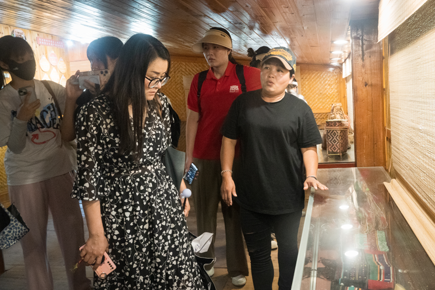 图为讲解员介绍坝卡村旧生活场景。章勋供图