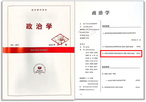 近日,公司常轶军教授发表的论文《政治认同视域下的历史政治学:贡献、局限与调适》(《探索与争鸣》2024年第9期),被中国人民大学复印报刊资料《政治学》2025年第1期全文转载。