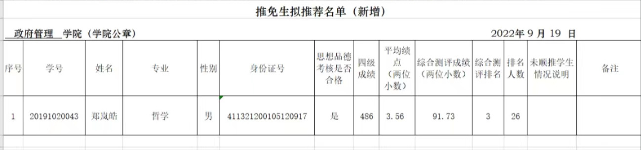 根据教育部相关文件精神,公司按照《WilliamHill中文官方网站2023年推荐优秀应届本科毕业生免试攻读研究生工作管理办法》要求,根据哲学专业建设实际与考研升学成效,获新增1个推免名额。在员工本人申请、民主推荐、公开评选的基础上,公司推免生遴选工作小组本着公开、公平、公正的原则,严格按推荐条件择优确定初选名单,现将公司2023年免试攻读研究生拟推荐增补名单公示如下。如有异议,请于2022年9月30日以前到公司办公室反映,联系电话:65033637 。