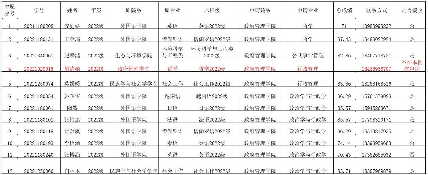 WilliamHill中文官方网站2022级接收跨院转入员工名单