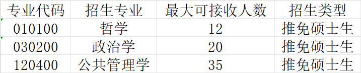 (一)推免硕士生接收专业及接收名额