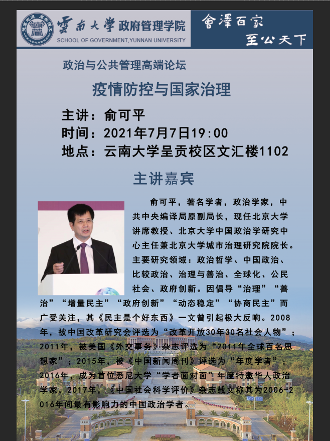俞可平:疫情防控与国家治理